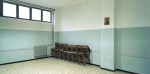 These pictures belong to my very first explorations in systematic photography. I started making this series during the final year of my photographic studies at Riccardo Bauer Institute in Milan, historically known as part of the former Umanitaria, one of the longest standing Italian philanthropic institutions founded at the end of the nineteenth century. At that time, as a class, we were given an assignment to explore the Bovisa district, a suburb of the city with a strong industrial past, whose imagery is rich in cultural references and which inspired, among others, the work of the painter Mario Sironi. Rather than focusing my attention on the dynamic change evident outside on the streets, I decided to linger my gaze on the lasting of the recent past. I thus started shooting interiors in the cultural associations and oratories which are largely widespread in the city, whose architecture, furniture and colors appeared to me as the memory of a naiveté, of a sense of community that would soon disappear.